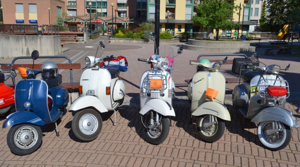 In piazza, a farsi ammirare prima della partenza destinazione Bellano e da lì Agueglio ed Esino Lario, c’erano anche una Vespa 98 del 1947 e una Vespa 125 del ’51.