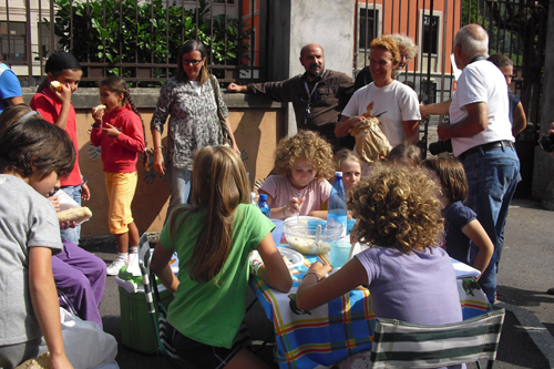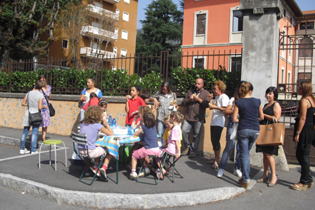 Protesta dei genitori per l’aumento dei buoni pasto voluto dal Comune di Lecco. Lunedì mattina alcuni genitori accompagnati dai propri figli hanno banchettato all’esterno della scuola elementare “Cesare Battisti” di Acquate mangiando riso freddo e panini durante la pausa pranzo.