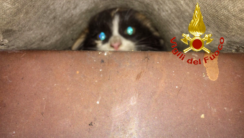 Alcuni residenti hanno avvisato i pompieri che si sono prodigati per salvare lo sventurato felino, rimasto incastrato in un’intercapedine.