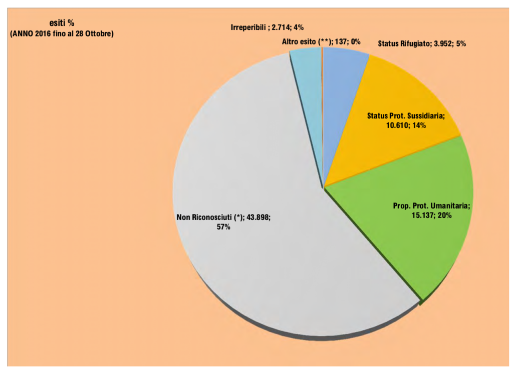 LECCO – Nel 2016 sono state analizzate 76.448 richieste d’asilo provenienti dai centri di accoglienza di tutta Italia, solo il 5% (3.952) sono state approvate. Altre 25.747 persone hanno ricevuto altra forma di protezione, mentre 46.612 richieste, circa 61% sono state rigettate.