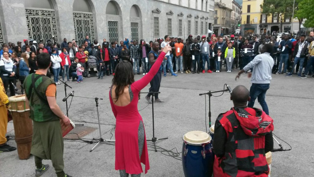 Sono stati proprio gli studenti a guidare i migranti alla scoperta della città, raggiungendo a piedi dal Centro Sportivo del Bione i punti più significativi del capoluogo manzoniano: Piazza Era e Pescarenico, Piazza Manzoni, il Municipio e le piazza del Centro. Intorno a mezzogiorno, con l’arrivo di tutti i gruppi, a preso il via un grande evento in piazza Garibaldi.