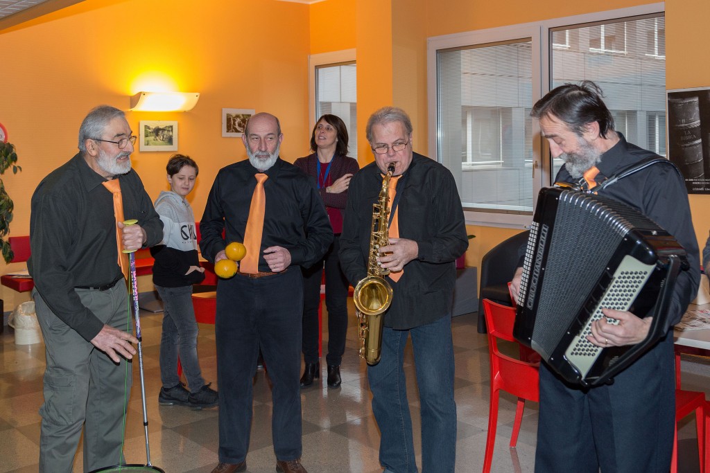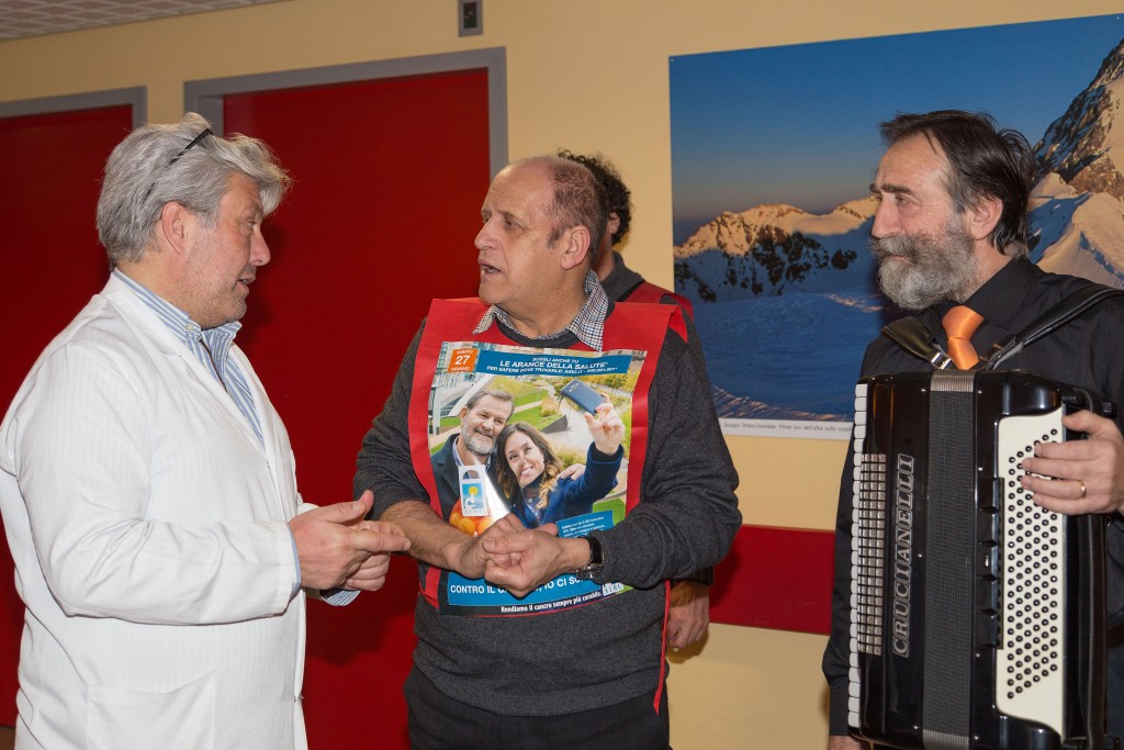 Raccogliere fondi per la ricerca e le cure per contrastare (e si riesce anche con efficacia) la malattia del secolo è estremamente importante. Come è importante affrontare il percorso di cura con spirito alto. Cos’è meglio della musica, hanno allora pensato alla Polisportiva? Così, nella sala d’attesa del reparto si è esibito il formidabile quartetto dei Picett del Grenta, guidati dal Maestro Gabriele Bolis e formato da Vincenzo Castagna, Mario Gilardi e Gilberto Garghentini.