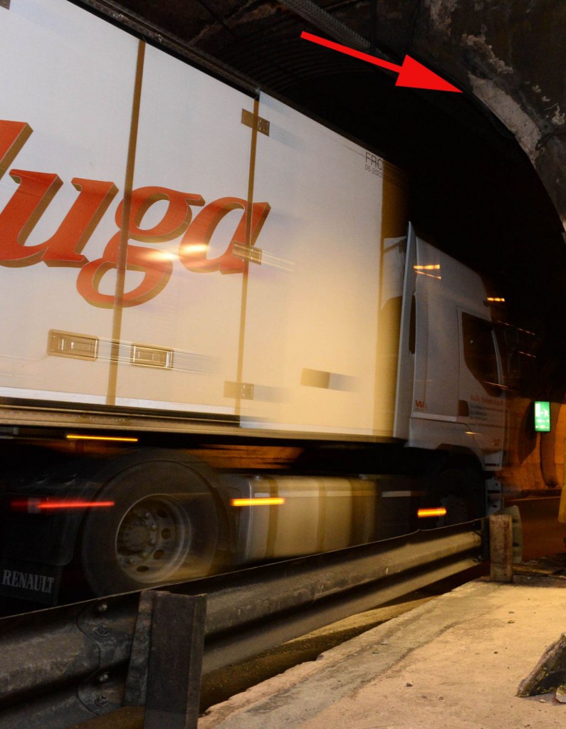 Lasciano però perplesse le foto scattate sul posto da un nostro corrispondente all’interno del tunnel, che evidenzierebbero come il punto di caduta si trovi su un tratto decisamente esterno del bordo laterale, in prossimità del marciapiede, difficilmente raggiungibile dal cassone di un camion, pure nel caso di una sbandata.