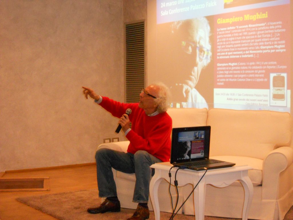 “E’ un libro scritto da uno che ormai ha i capelli bianchi – ha esordito Giampiero Mughini, presentando il suo nuovo lavoro – scritto da uno nato e plasmato dal Novecento, un secolo con due guerre mondiali, due crimini politici come il nazismo e il comunismo, una guerra fredda, il muro di Berlino e tanti altri conflitti: il Novecento, però, è stato anche il secolo che ha inventato nuovi linguaggi e risorse che oggi abbiamo a disposizione, dal computer alla televisione”. “Il mio – ha proseguito Mughini – è quindi un libro su un secolo pieno di cambiamenti, in cui rifletto e racconto alcuni aspetti del Novecento, anche se manca il capitolo su Steve Jobs, che pure ha inventato strumenti con cui l’umanità ha fatto balzi in avanti verso il progresso: non sarei stato capace di scriverlo, perché sono di una generazione diversa, che nutre un amore quasi erotico per la cultura cartacea”.