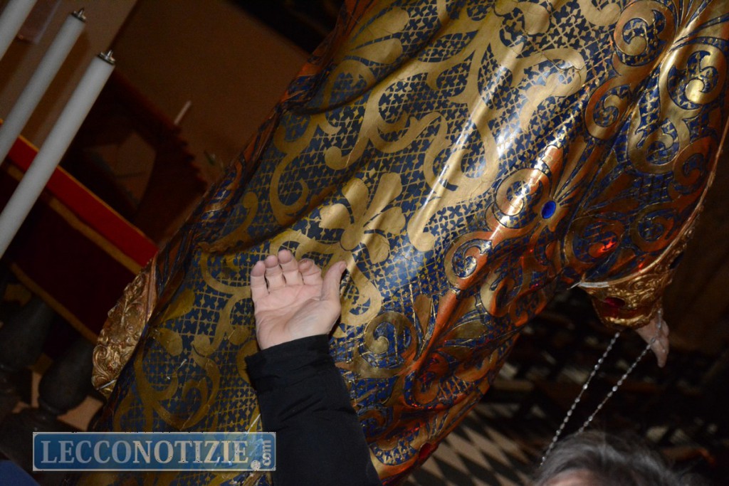 LECCO – Processioni ‘vietate’ per la statua della Madonna del Rosario conservata nella Basilica di San Nicolò: la scultura, in legno policromo risalente al 1837, anno della sua collocazione nella chiesa centrale di Lecco, presenta delle crepature, tali per cui è stata sconsigliato il suo spostamento all’esterno.