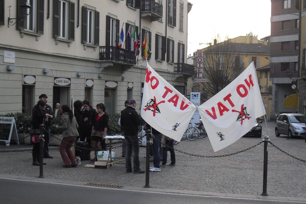 I No Tav lecchesi hanno distribuito i volantini venerdì pomeriggio dalle 17 alle 19 in piazza Diaz (“scelta perché vicina alla
