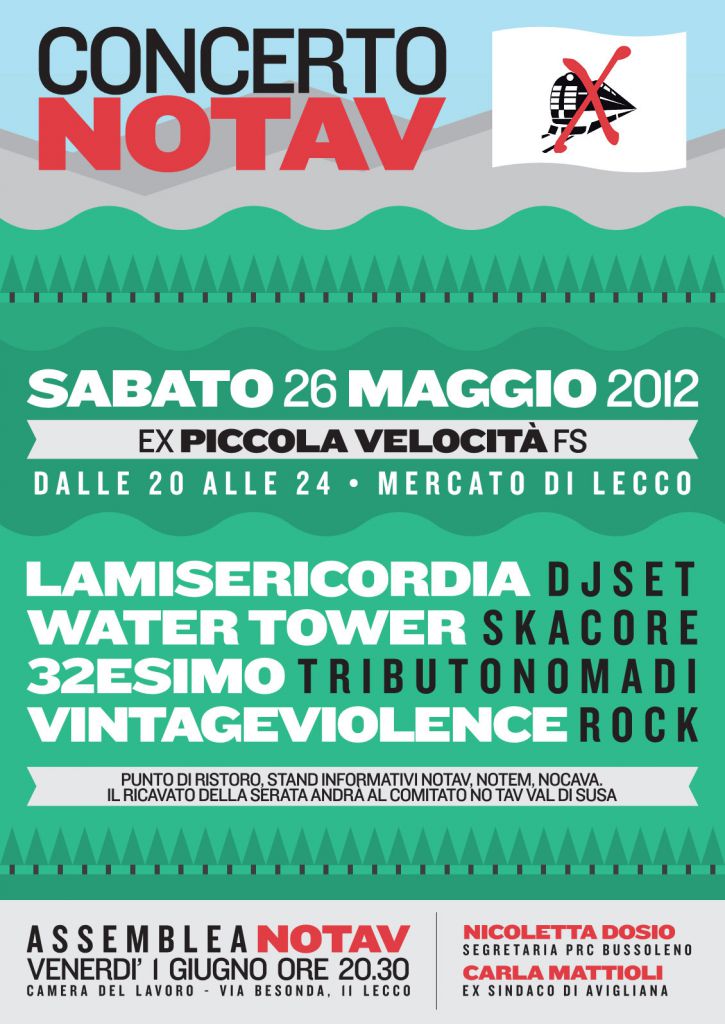 LECCO – Continuano le iniziative promosse dal Comitato No Tav Lecco e Arci Lecco, per sensibilizzare la cittadinanza sulla questione dell’alta velocità in Val Susa. In particolare, sabato 26 maggio, il gruppo ha organizzato un concerto nell’area dell’ex Piccola (piazza del Mercato) con inizio alle ore 20.