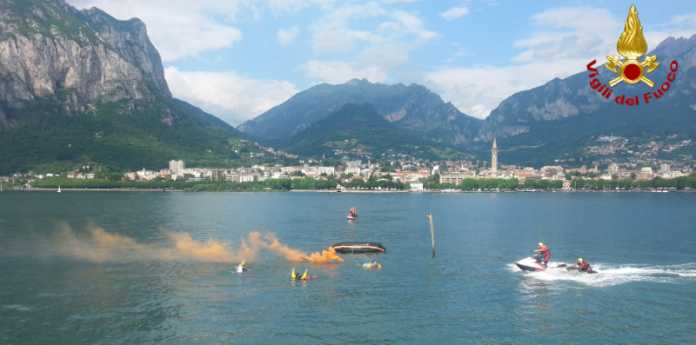 Al pomeriggio, sul lungolago di Malgrate, è stato simulato un intervento di ricerca e soccorso a persone cadute in acqua da una imbarcazione; operazione che ha visto l’intervento dell’imbarcazione dei Vigili del fuoco e della moto d’acqua (MDA VF 35) con due operatori VF. Sull’imbarcazione erano presenti anche due unità cinofile della Scuola Italiana Cani da Salvataggio (S.I.C.S.) che hanno collaborato al soccorso e recupero da riva delle persone cadute in acqua.