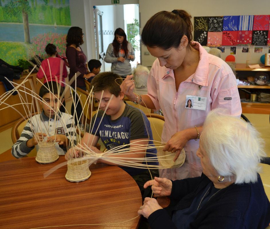 Gli anziani ospiti della Casa hanno istruito gli alunni di quinta sulla tecnica con la quale creare cestini e altri oggetti di vimini, intrecciando tra loro rami di midollino, uno tra i materiali più utilizzati proprio per realizzare oggetti di arredamento per la sua caratteristica di essere antico e al tempo stesso estremamente moderno.