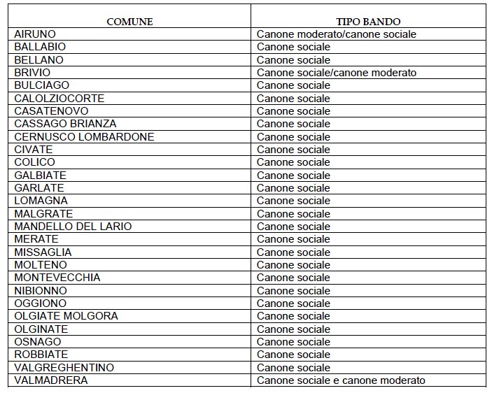 LECCO – Buone notizie per chi è in attesa di casa: da oggi, 15 ottobre, al giorno 28 novembre 2013 potranno essere presentate le domande per la formazione della graduatoria di assegnazione alloggi di edilizia residenziale pubblica Aler nei comuni riportati nella tabella in pagina.