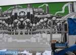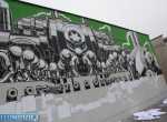 Il Fiocchi, invece, potrà vantarsi di un murales in pieno stile M-City: “I suoi lavori vengono quasi sempre realizzati su ampie superfici – ci spiega Wally – proviene da Danzica, città portuale dove il trasporto mercantile di grossi macchinari è all’ordine del giorno. Questo è l’input che M-City ha ricevuto dall’esterno e che ha rielaborato in uno stile dove la componente meccanica ha sempre una dominanza sull’uomo. Lo stile è la nostra firma, attraverso di esso cerchiamo di interpretare le commissioni che ci vengono affidate”.