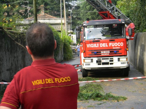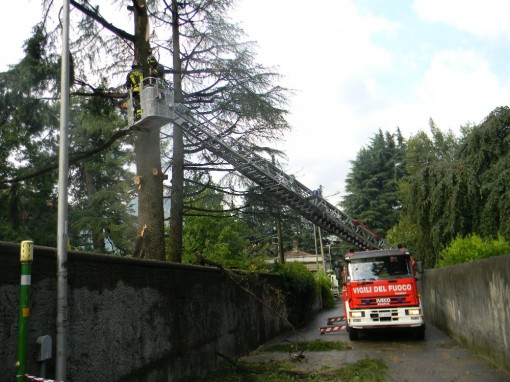 Un lavoro che ha costretto la Polizia Locale di Lecco a chiudere la via al traffico, ancora inaccessibile in quanto i Vigili del Fuoco sono tutt’ora al lavoro, con loro anche l’Enel, essendoci vicino un cavo della corrente è stato necessario “staccare” e alcuni uomini della ditta Valassi che stanno caricando su un camion i rami tagliati.