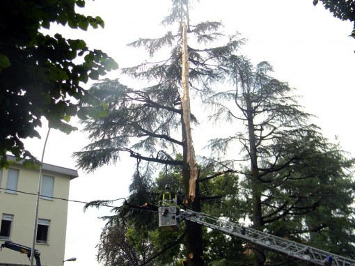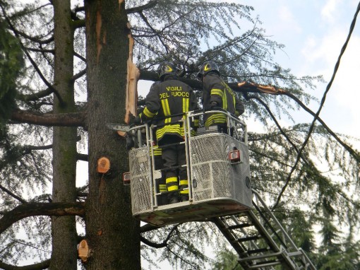 Le fronde del pino sono finite sulla carreggiata, fortunatamente senza causare danni a cose e persone, tuttavia è stato necessario allertare i Vigili del Fuoco per ripulire il selciato e soprattutto sfoltire il pino mettendo così in sicurezza albero e via.