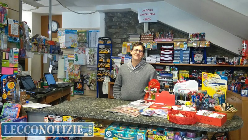 Il sindaco Marco Passoni dietro il bancone della propria cartoleria