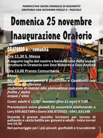 Oratorio Pascolo. Domenica anche don Roberto all’inaugurazione
