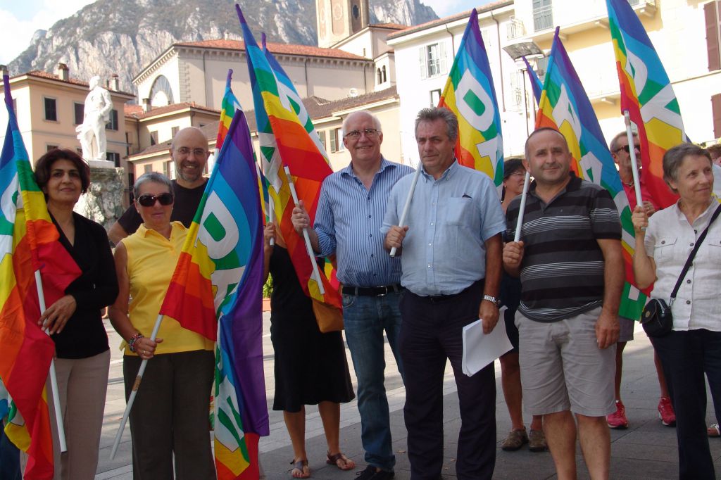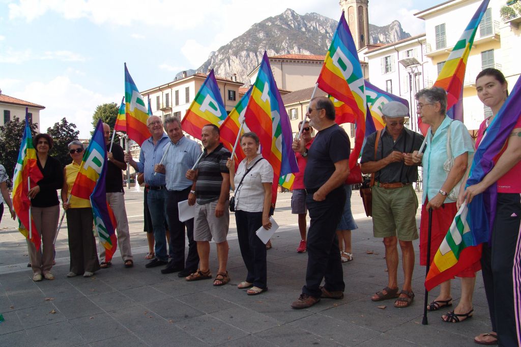 Nel pomeriggio di sabato un presidio organizzato dalla Tavola per La Pace, che vede impegnata anche al Cgil e alla quale ha aderito anche SEL, ha colorato con le bandiere arcobaleno piazza Cermenati.