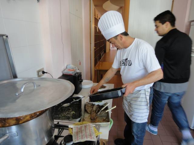 Il risultato? Circa 25 utenti abituali della mensa Caritas hanno partecipato alla mensa preparata dai 12 del Gruppo Rivalsa, che per l’occasione si sono trasformati (nuovamente, dopo la felice esperienza dell’11 aprile) in cuochi e camerieri.
