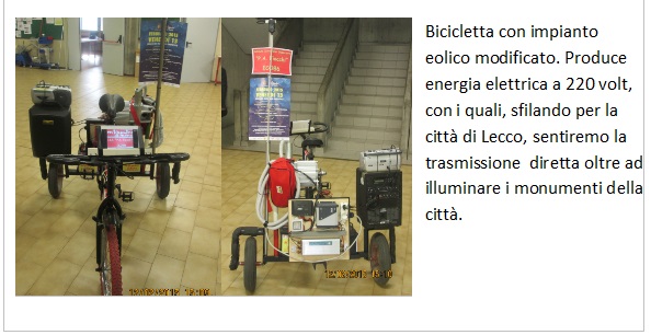 LECCO – Una bici per illuminare i monumenti di Lecco pedalando, una “lucia” a pannelli fotovoltaici… Non è fantascienza: sono alcuni dei lavori realizzati dall’Istituto Superiore “Fiocchi” per “M’illumino di meno”, giornata del Risparmio Energetico fissata quest’anno per venerdì 13 febbraio.