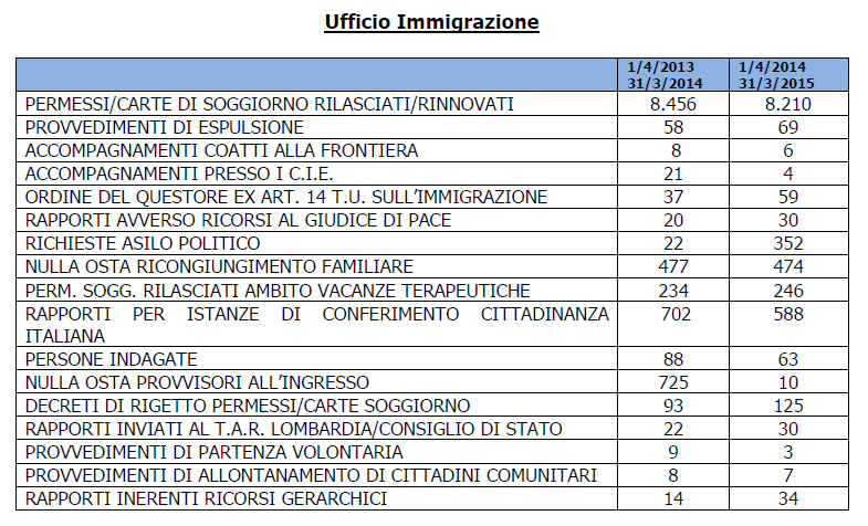 LECCO – L’emergenza immigrazione ha i suoi effetti anche nel lecchese e impegna ogni giorno gli uffici della Questura di Lecco. Lo si evince dai dati diffusi venerdì in occasione del 163° di fondazione della Polizia di Stato.