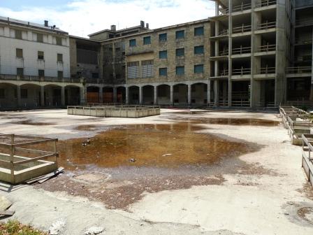 Per i Cinque Stelle “lo scheletro del nuovo tribunale, già orribile nella sua architettura e nello spregio del maestoso ambiente naturale circostante, oggi assume le sembianze di un monumento all’inutilità ed allo spreco” e “luogo e ricettacolo di drogati e balordi”.