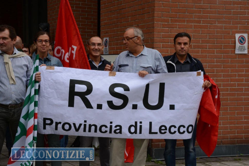 LECCO – Ha preso il via alle 10 di martedì la protesta dei lavoratori e dei sindacati all’ingresso della Prefettura di Lecco, destinata a chiudere per essere accorpata alla sede di Como.