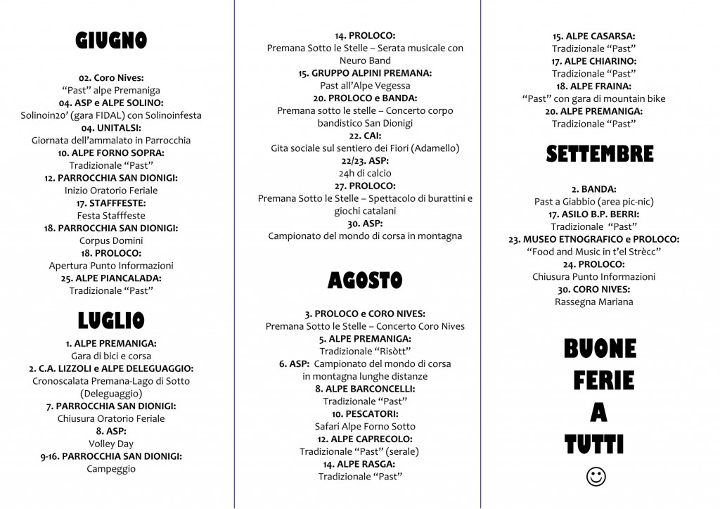 Ma gli appuntamenti premanesi non finiscono qui, su tutti il doppio appuntamento mondiale del Giir di Mont il 30 luglio e il 6 agosto, ma sono davvero tantissimi gli appuntamenti che scandiranno l’estate premanese come da PROGRAMMA.
