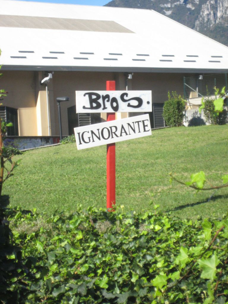 Una scultura in linea con la poetica irriverente di Bros, che tuttavia non si è conservata a lungo intatta. Domenica infatti la scultura è stata modificata da ignoti con il nome di Bros al posto di quello del poeta Carducci, risultato: “Bros ignorante”.