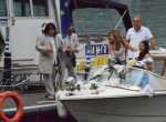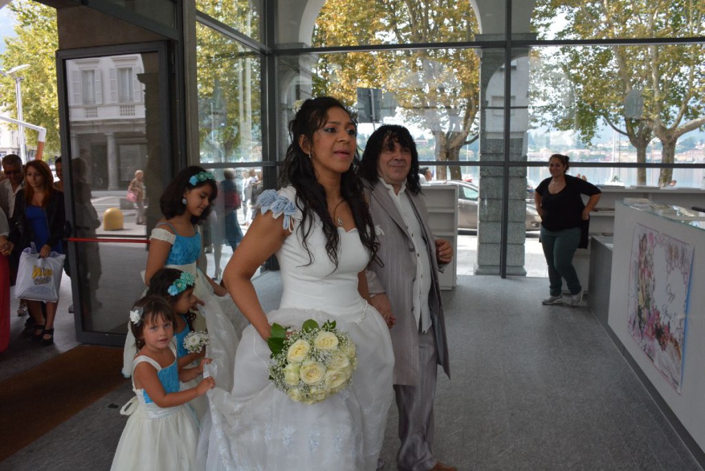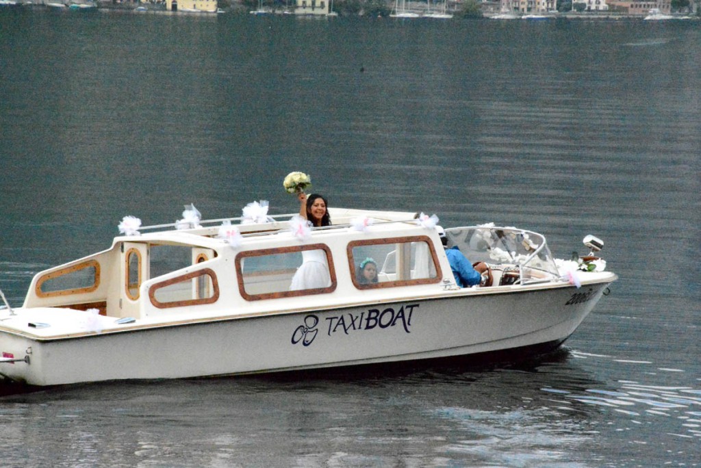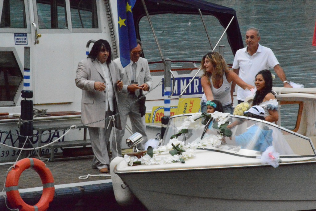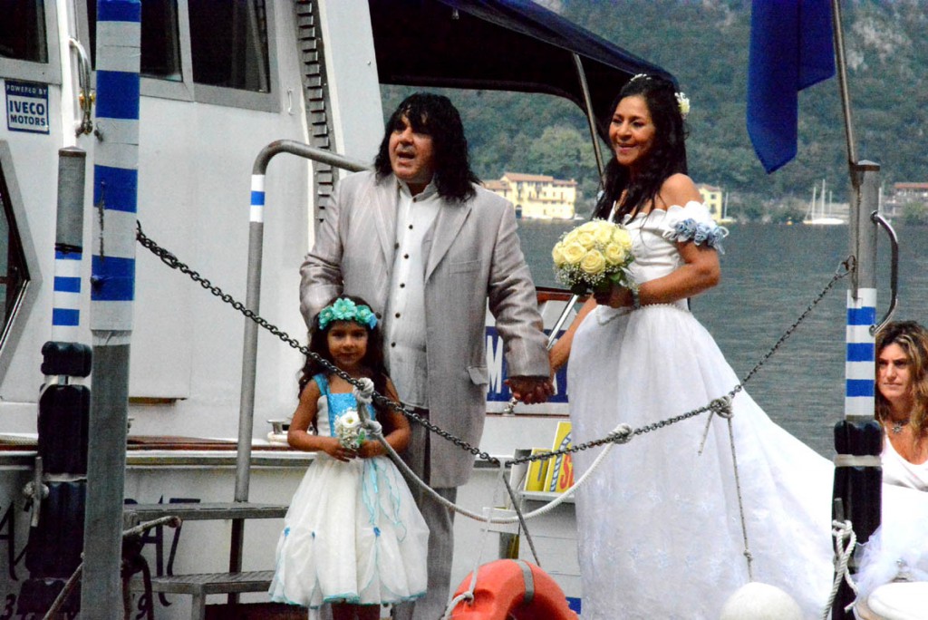 La sposa, vestita con il tradizionale abito bianco, è arrivata dal lago, a bordo del taxi boat che l’ha accompagnata dalla riva di Moregallo al lungolago lecchese, dove l’hanno accolta lo sposo e gli invitati. Con loro anche la figlioletta di 4 anni, la piccola Madelaine Kirya.