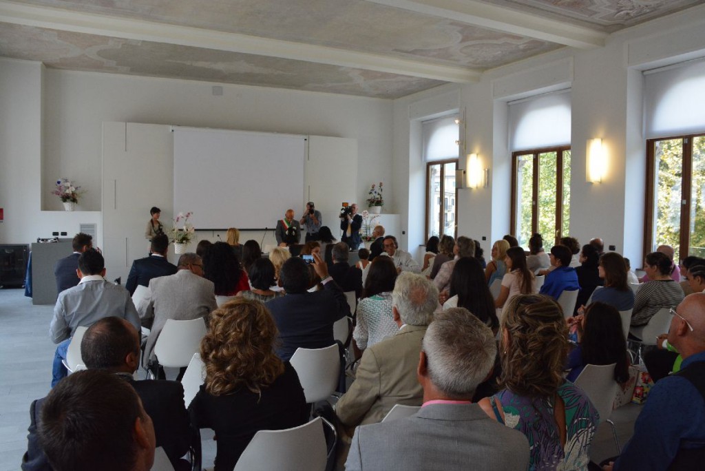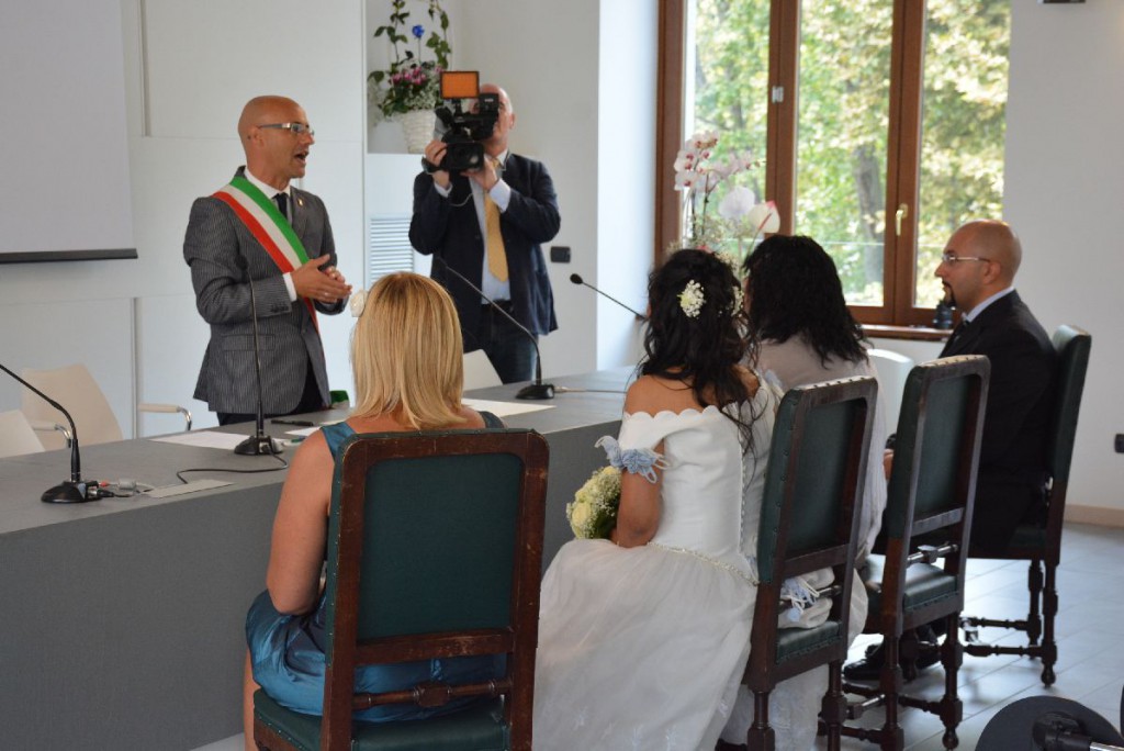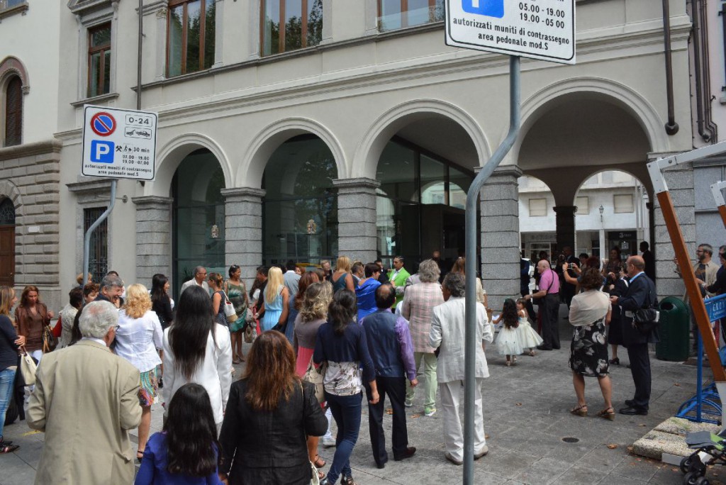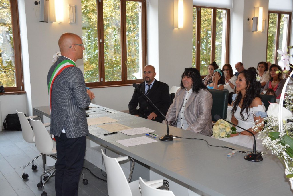 Il festoso corteo ha raggiunto il palazzo di Piazza XX Settembre dove, in una sala conferenze inaugurata lo scorso anno e nuova ai “fiori d’arancio”, li aspettava il sindaco di Mandello, Riccardo Mariani, che ha celebrato il rito unendo in matrimonio i suoi due concittadini. “Siamo i primi, praticamente lo inauguriamo noi Palazzo delle Paure” ha scherzato lo sposo con il sindaco.