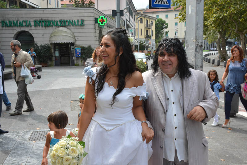 LECCO – Lancio del riso a Palazzo delle Paure per il primo matrimonio civile celebrato nell’edificio storico lecchese, quello del noto imprenditore Pino Carvelli, titolare del ristorante “Avalon” di Moregallo, e della compagna equadoregna Marisol Cedeno.