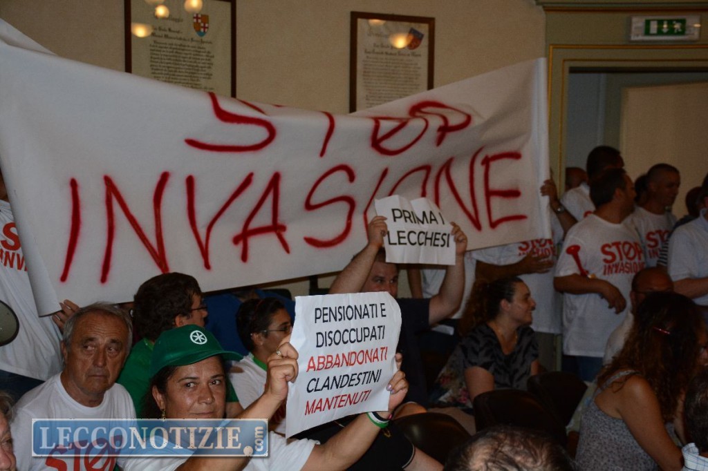 LECCO – Centrodestra all’attacco sulla questione profughi: con i militanti della Lega e di Fratelli d’Italia che hanno “invaso” l’aula consiliare a margine della manifestazione che ha sfilato per via Cavour (vedi articolo), i rappresentanti del Carroccio e il consigliere Lorenzo Bodega hanno insistito affinché nella seduta del Consiglio comunale di martedì sera si facesse chiarezza riguardo all’accoglienza dei migranti nella palestra della scuola di Maggianico .
