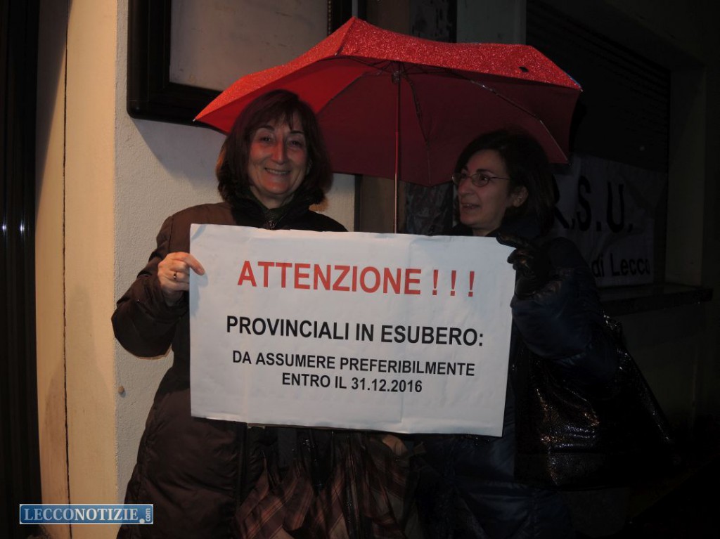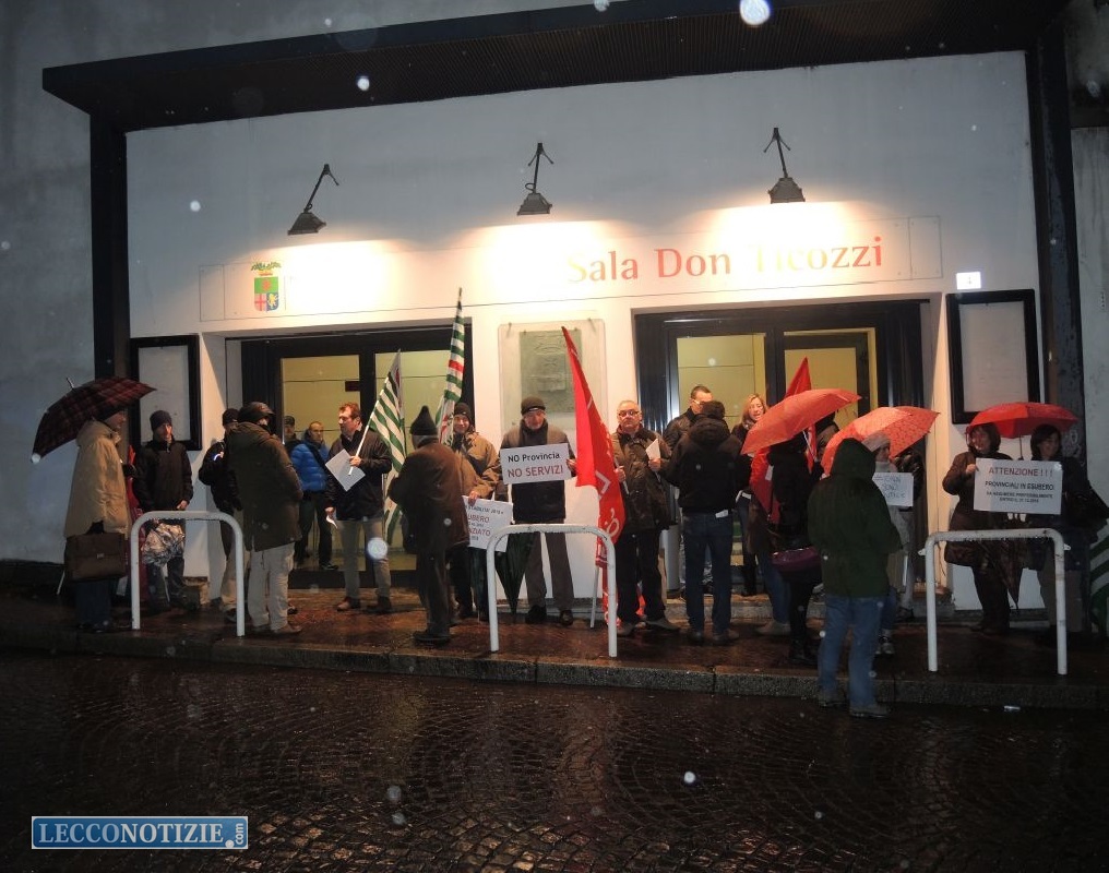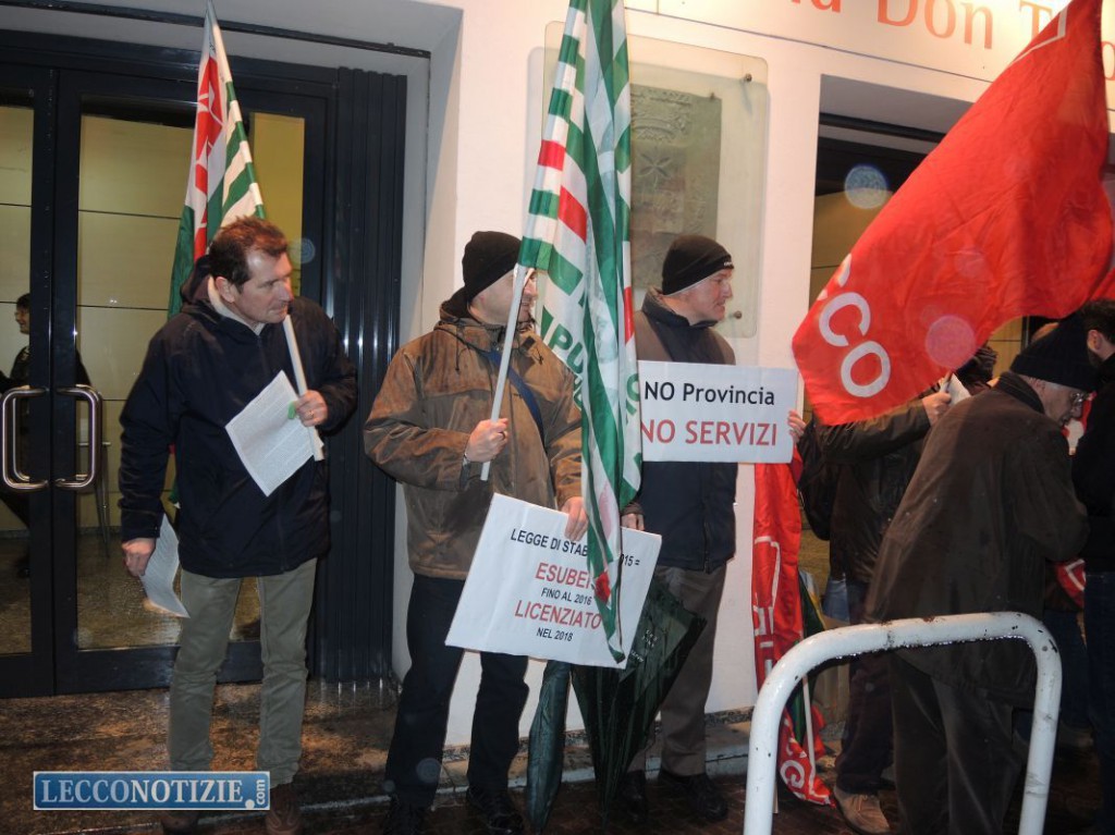 Un problema grave e sempre più concreto che lavoratori e sindacalisti hanno voluto portare in presidio proprio nel tardo pomeriggio di mercoledì presso la Sala Ticozzi di Via Ongania, sede fra l’altro dell’Assemblea Provinciale dei Sindaci. “Siamo qui non per polemizzare coi sindaci – ha dichiarato Francesco Mazzeo della Cgil – ma per interagire con loro: facciamo loro presente che il ricollocamento del personale non è questione leggera e che sono troppe le persone che rischiano un licenziamento a causa di questa legge. Chiediamo che vengano trovate delle soluzioni non solo dal Governo ma anche all’interno dei nostri Comuni, affinchè sia favorito il ricollocamento del personale provinciale in mobilità: la qualità e la competenza di questi lavoratori non vanno disperse.”