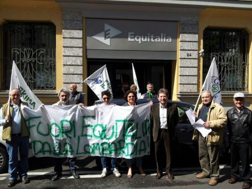 LECCO – Puntuali come da programma, alle 10.30 di questa mattina, i militanti leghisti capitanati da Giulio De Capitani si sono presentati davanti agli uffici di Equitalia in via Aspromonte a Lecco per protestare contro l’agenzia di riscossione. Un’azione coordinata a livello regionale, replicata alla stessa ora in tutti i capoluoghi di provincia della Regione. L’obiettivo è uno solo, come già a suo tempo il presidente Roberto Maroni aveva dichiarato, ossia: cacciare questa struttura.