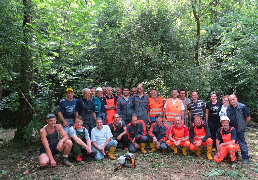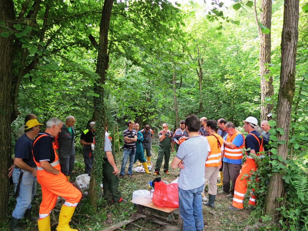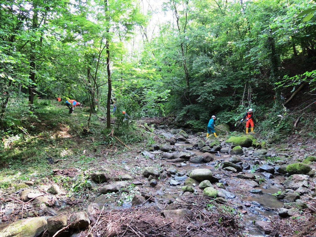 Più precisamente presso quel tratto del corso d’acqua che scorre nel bosco all’interno del Parco della Valletta fra Barzago e Bulciago e che risultava in larga parte ostruito da rami, sterpaglie ed in particolare da diverse piante morte e d’alto fusto ( una trentina se ne sono contate alla fine) che facevano da vere e proprie dighe al deflusso naturale del torrente.