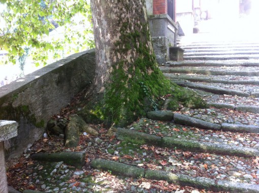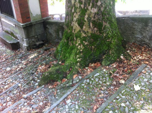 LECCO – E’ diventato così grande che ha sollevato quattro gradini e ha spostato letteralmente un muro di contenimento ora pericolante e pericoloso in quanto si affaccia sul primo terrazzo del cimitero di Laorca e la grossa “pancia” che si è venuta a formare sotto la spinta delle grosse radici non rassicura per nulla.