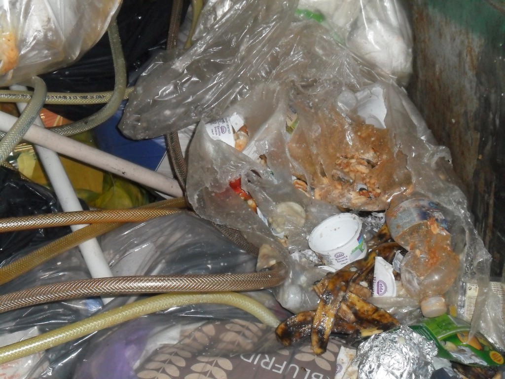 Dentro, un po’ di tutto: dalle bucce della frutta al pane, dalla carta ai contenitori di plastica dei succhi di frutta, bottigliette d’acqua e altri scarti di cibo, della pasta, tutto gettato indistintamente nei sacchi bianchi dell’indifferenziato. Una casualità o una cattiva abitudine?