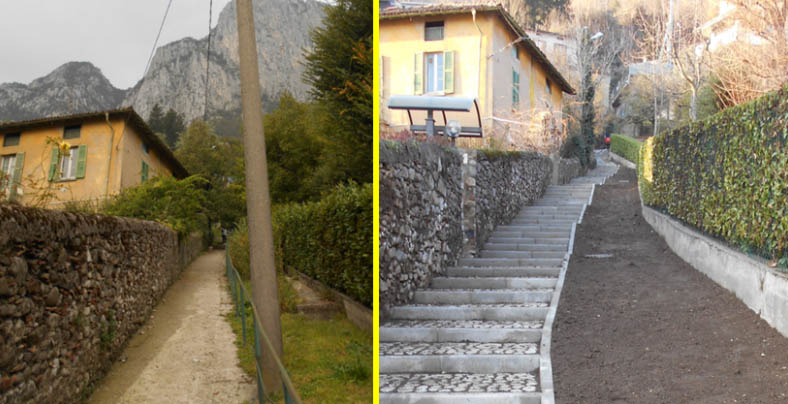LECCO – Si avviano verso il completamento i lavori di riqualificazione della scalinata di via San Martino, che restituiscono luce e decoro al caratteristico camminamento che attraversa il rione di Rancio collegando via Mazzucconi con via Quarto: una veste nuova, che rispecchia tuttavia la storia e ripropone le peculiarità della scalinata in ciottoli.