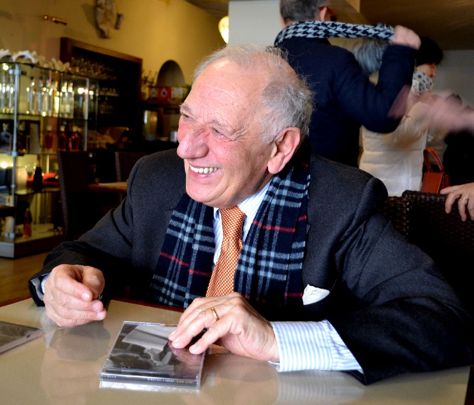 E c’è la fotografia , tanto bella quanto dolce, che riproduce il maestro con Carla, la donna da lui sposata giovanissima, strappata soltanto un mese fa al suo affetto e a quello degli adorati figli Giorgio, Carlo e Laura.