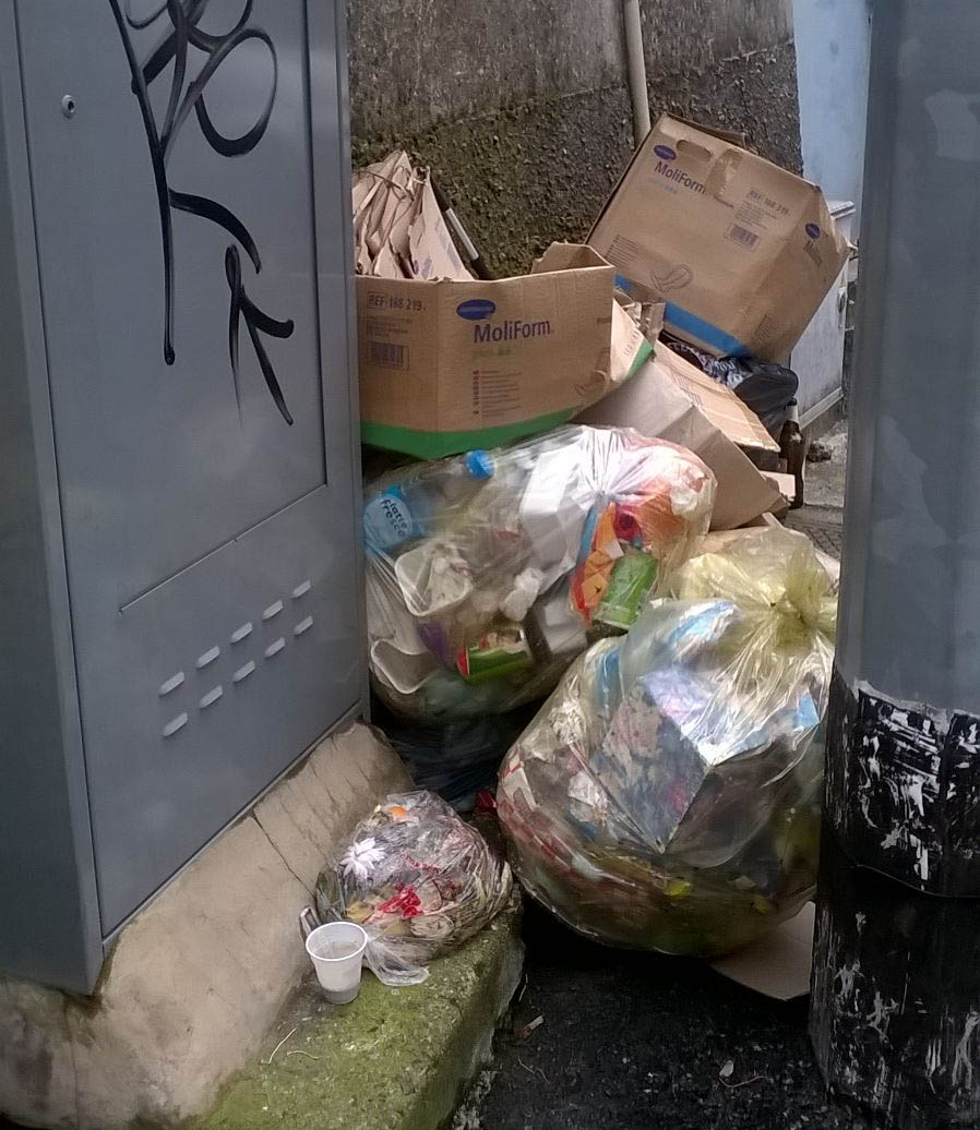 rifiuti corso monte ortigara (6)Succede in corso Monte Ortigara dove cumuli di monnezza vengono accumulati alle spalle della pensilina del pullman. “Espongono i sacchi nei giorni sbagliati, gli operatori passano e mettono il cartello giallo per segnalare l’errore ma poi la spazzatura resta lì per giorni – spiega un residente – a dire il vero anche la pulizia delle strade lascia desiderare. Eppure, un cittadino di Laorca paga le stesse tasse di un residente del centro quindi dovremmo avere un trattamento uguale”.