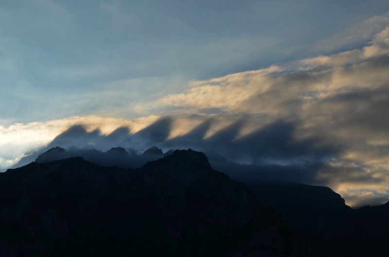Aprendo la finestra è stato impossibile non notare il suggestivo gioco di luci e ombre offerto dalla nostra montagna. Il sole che stava sorgendo ha proiettato su un sottile strato di nubi l’ombra riflessa del Resegone. E così la speciale “proiezione” è appara per qualche magico minuto.