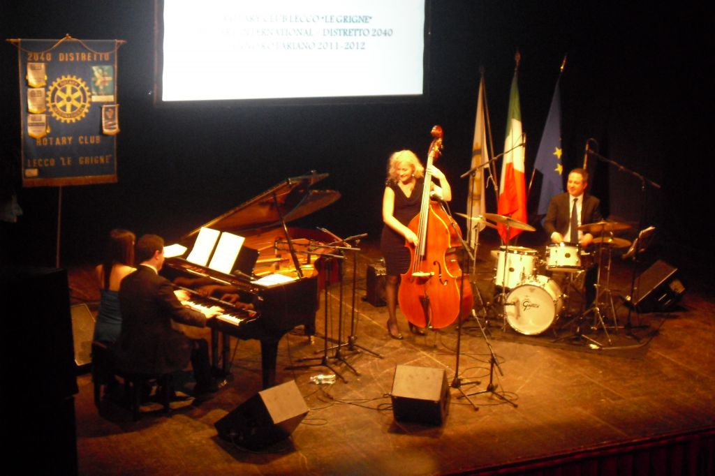 LECCO – Una serata all’insegna del jazz e delle donne quella che si è tenuta ieri sera presso il Teatro della Società di piazza Garibaldi. “L’amore, la donna e il jazz”. Ecco il titolo del concerto benefico organizzato dal Rotary Club di Lecco “Le Grigne” e che ha visto salire sul palco del Sociale due promettenti musiciste: la pianista americana Stephanie Trick e la contrabbassista australiana Nicki Parrott, entrambe accompagnate dal jazzista italiano Paolo Alderighi.