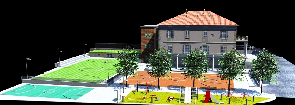 pallavolo in resina, area giochi per i più piccoli su terreno anti trauma e poi come ultima fase ripiantumazione di alberi e sistemazione delle aiuole. La realizzazione avverrà in quattro fasi esecutive.