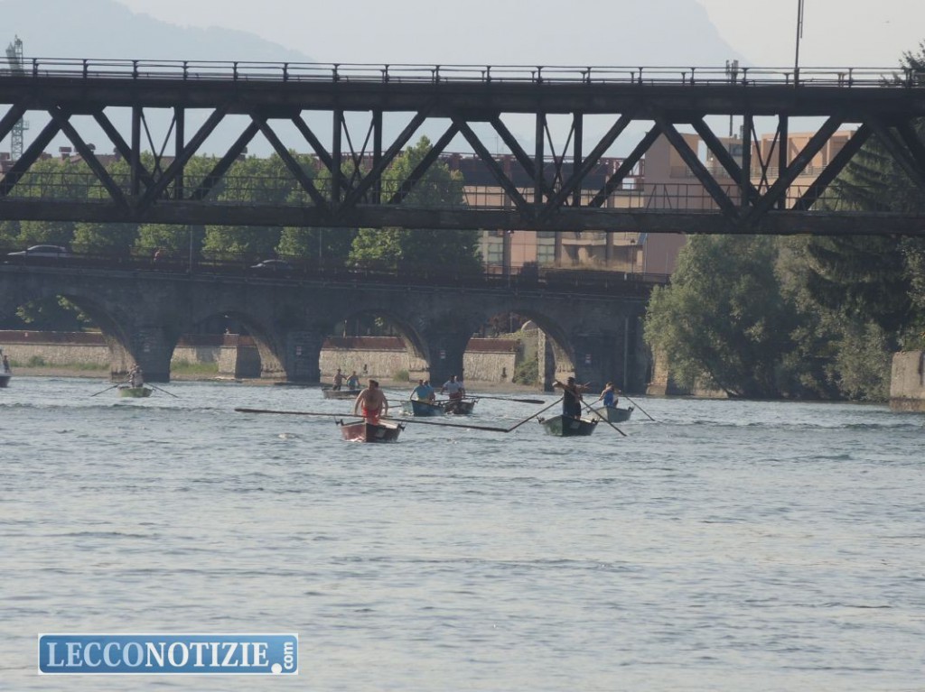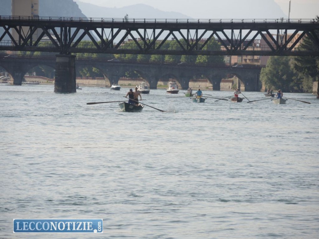 Come da tradizione le barche – tipicamente a fondo piatto – rappresentanti le contrade di Pescarenico (Cuccagna/Cunvent – Era – Bione – S-Ambrogio – Stradone – Piscen – Fossato – Isula) si sono sfidate in una regata lungo il fiume Adda, guidate ciascuna da due vogatori.