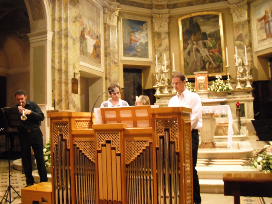 LECCO – Inaugurato sabato sera l’organo positivo nella chiesa di San Giovanni Evangelista a Lecco. Quando a metà estate avevamo parlato dell’evento la data era tutt’altro che certa, Flavia Crotta, organista della parrocchia da quasi un trentennio, e suo marito Stefano Casiraghi, trombettista, hanno accelerato i tempi affinchè venisse fissata una data certa e così è stato. Sabato in una chiesa colma sono state moltissime le persone che hanno partecipato all’evento, il concerto godibile ha catalizzato l’attenzione del pubblico per unora buona. Brani per organo e due trombe, quella del marito di Flavia, Stefano Casiraghi e di Alberto Caiani.