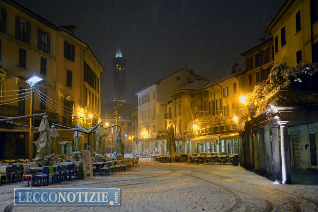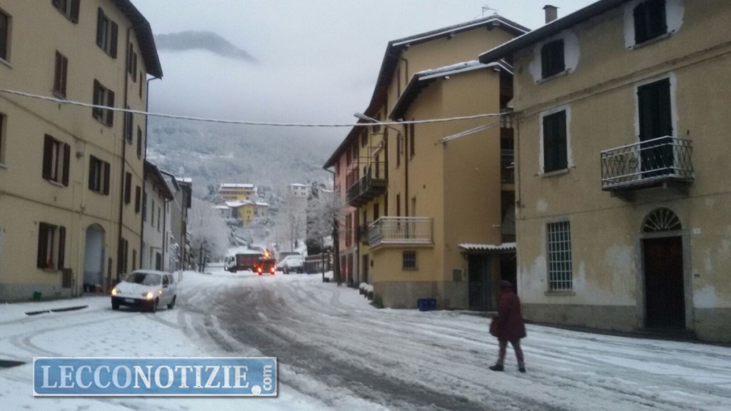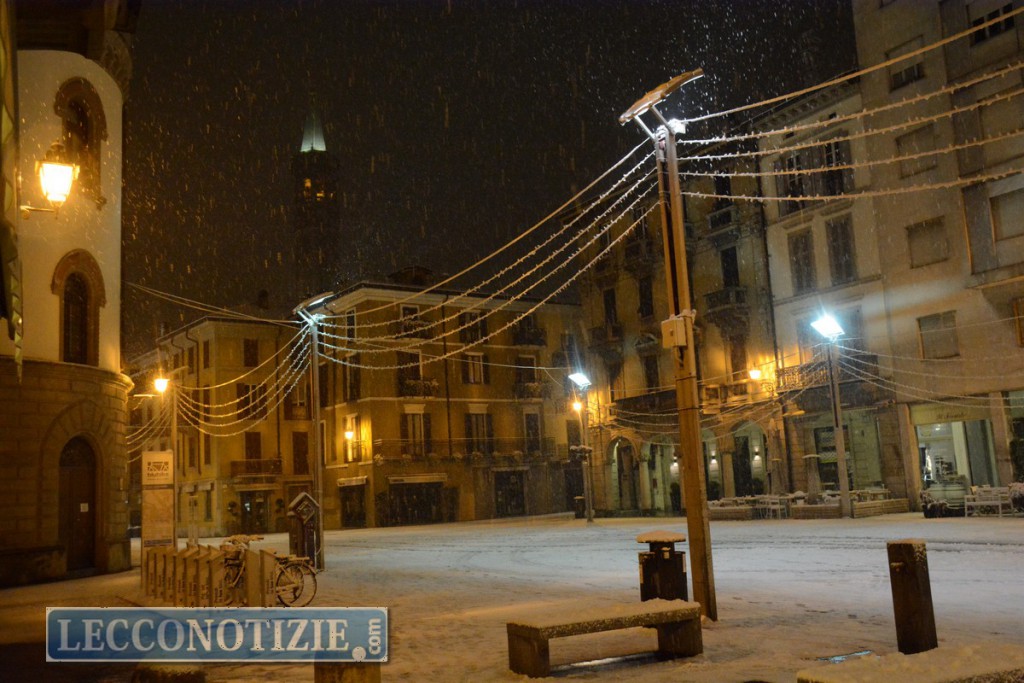 Imbiancato anche il centro Lecco con strade secondarie ricoperte da un velo di neve mentre sulle strade principali la circolazione, all’orario di rientro dal lavoro, giovedì pomeriggio  ha subito leggeri disagi.