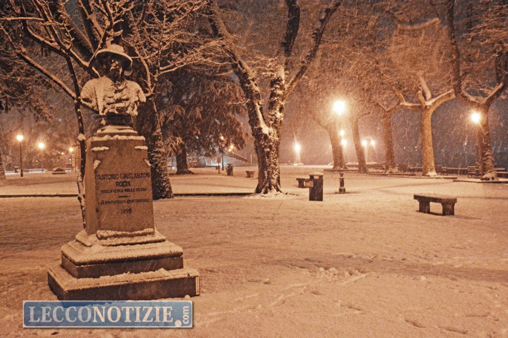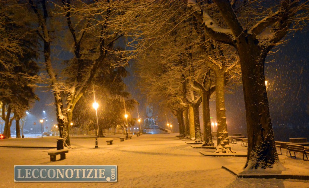 Nelle foto, scattate nel tardo pomeriggio e in serata, il manto bianco ha coperto Lecco e i comuni limitrofi.