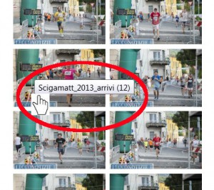 Nel Form, oltre ai campi richiesti, si dovrà indicare il numero della foto che si desidera e che è possibile individuare portando il puntatore del mouse sulla foto stessa ES: Scigamatt_2013_Arrivi_(33)