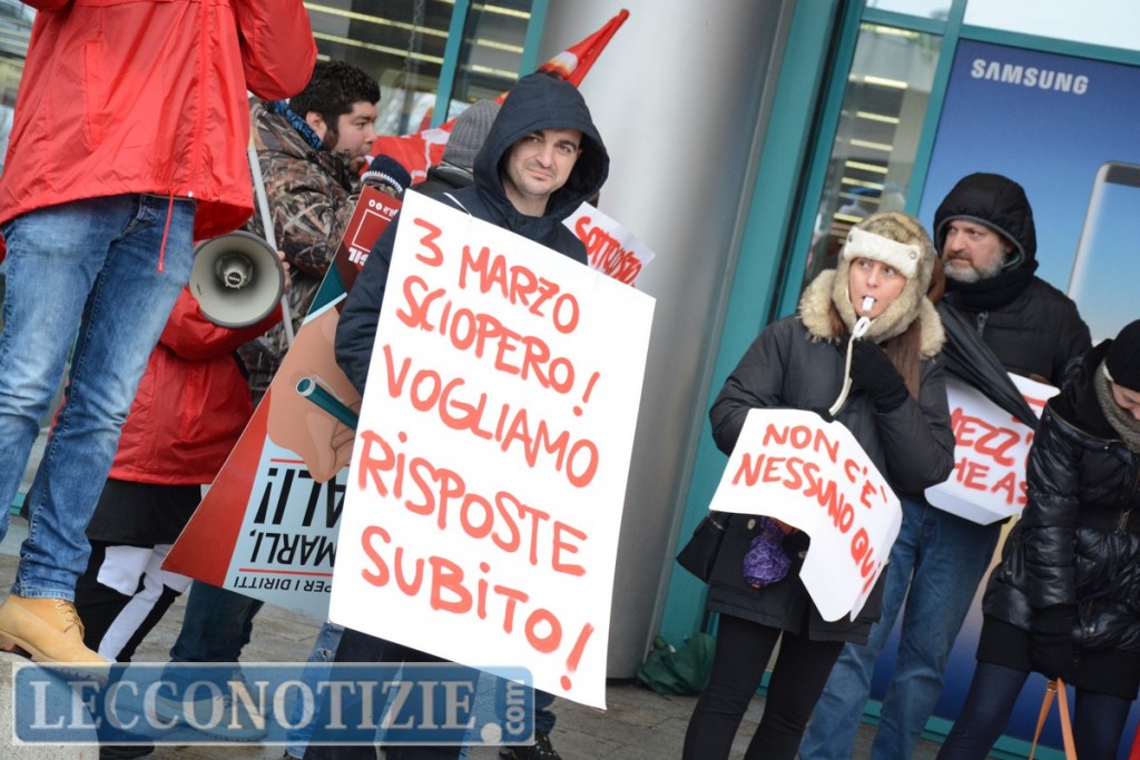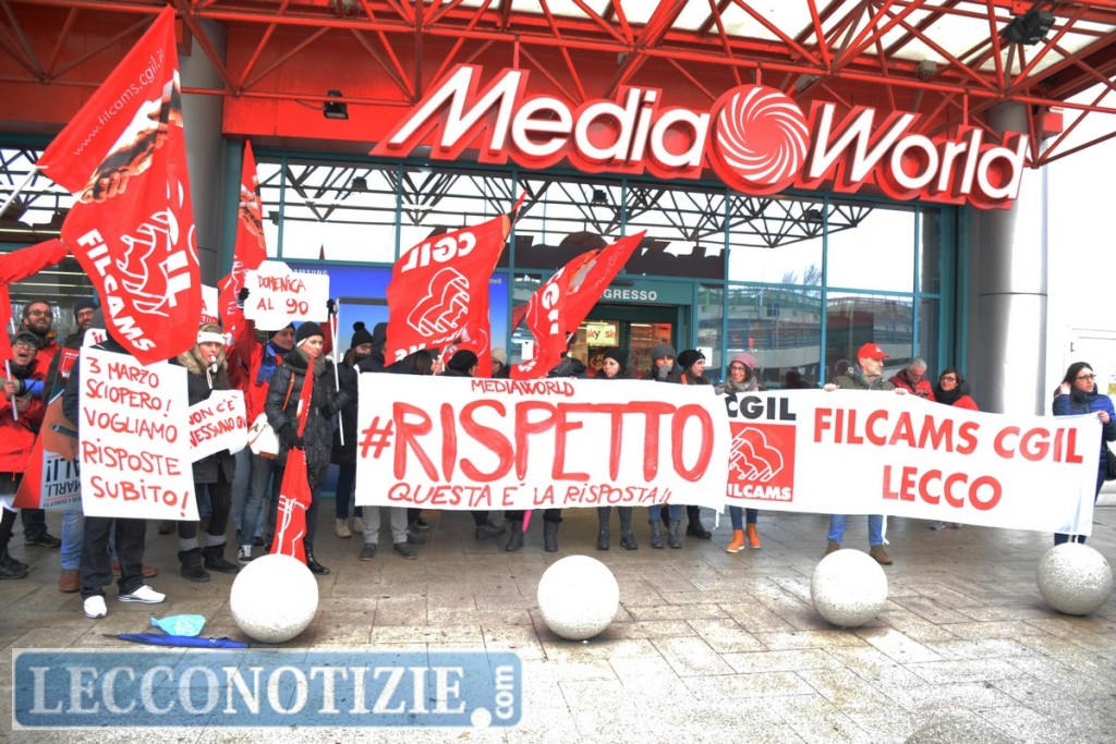 LECCO – La chiusura di due punti vendita, quello di Grosseto e di Milano centrale, il trasferimento dalla sede di Bergamo a quella di Verano Brianza per 500 dipendenti e il taglio della maggiorazione domenicale dal 90% al 30%: “un fulmine a ciel sereno” spiega Diego Verdoliva della Ficalms Cgil, rappresentante sindacale dei lavoratori della MediaWorld di Lecco che sabato hanno deciso di aderire allo sciopero contro le decisioni assunte dall’azienda.