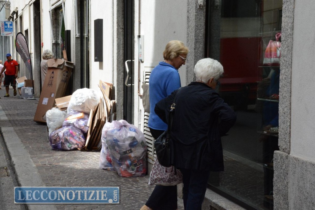 Sciopero della raccolta, centro Lecco invaso dai rifiuti