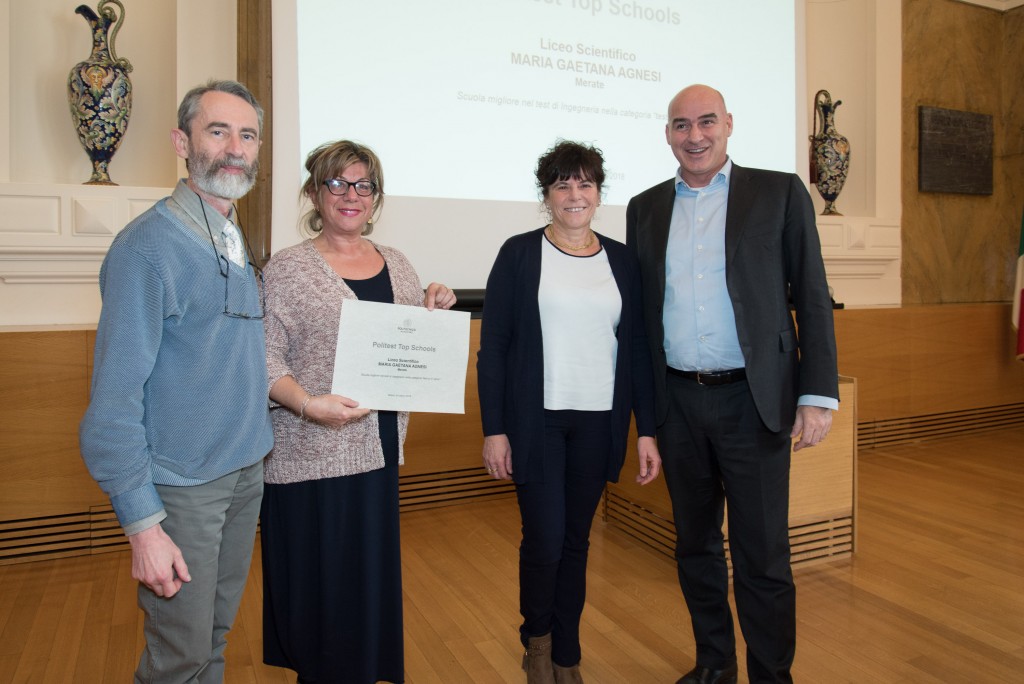 Tra le scuole premiate anche due istituti lecchesi: il liceo scientifico “Maria Gaetana Agnesi” di Merate è risultato miglior scuola nel test di Ingegneria nella categoria “test al 4° anno”. Hanno ritirato il premio la prof. Rosangela Spinelli e la prof. Lorella Villa, referenti per l’orientamento in uscita.
